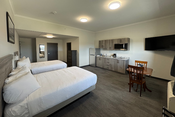 This all new room features 2 Double Beds, a fully equipped kitchenette with dining table, a spacious bathroom, 58" smart TV with cable, complimentary WIFI, and more. This room also has a...